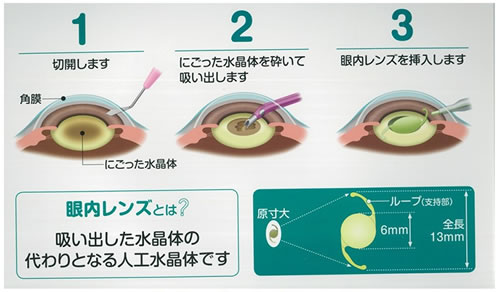 その代りに人工の水晶体(眼内レンズ)を挿入します。