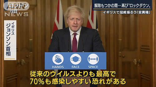 イギリスで変異した新型コロナウイルスの感染が急拡大し、