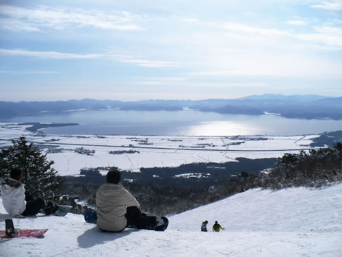 そこから猪苗代湖に沿ってスキー場へ