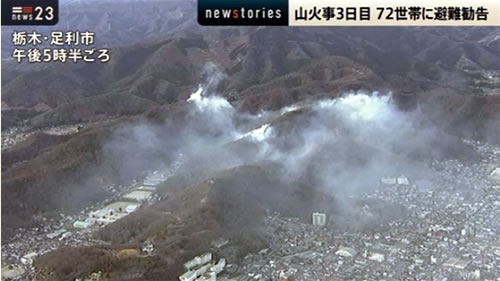 栃木県で結構大規模な 山火事 が発生しています。