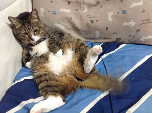 再び 触って 触って 撫でて 撫でて とベッドに乗ってきます。