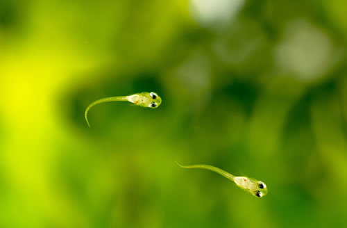 生まれたての 1~2mm くらいのメダカを突いていますから。