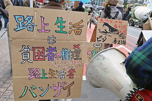 葉羽 写真は入居者を虐待していた貧困ビジネスを糾弾する路上生活者たちのデモです。生活保護者からさらに搾取する・・初めて聞いた時には耳を疑いました。