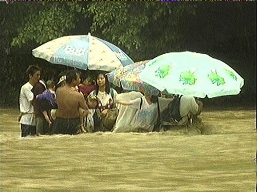 濁流の真ん中で家族たちが固まっている映像がTVで流れました。