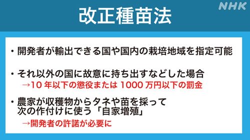 そんな事から少しでも 日本の農家 を守ろうとしている 種苗法