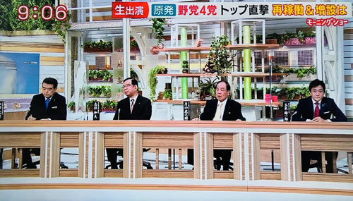 今日は昼のTVで 野党4党 の 党首クラス が出演していて