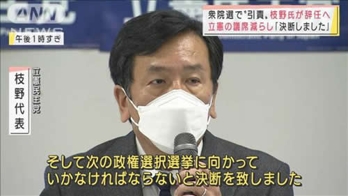 これを受けて 枝野さん は 辞任 するそうですが、