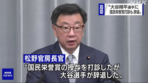国民栄誉賞 なんて 政府の 人気取り ですからね。
