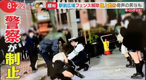 かなり多くの若者が繰り出して 外飲み宴会 を行い