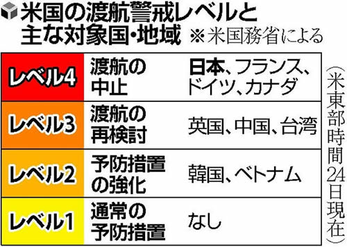 アメリカがまさかの 渡航警戒レベル最高 とか!