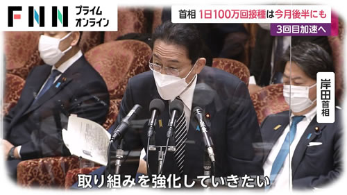 岸田総理 は今日 ワクチン接種100万回/日 を早期に目指す。