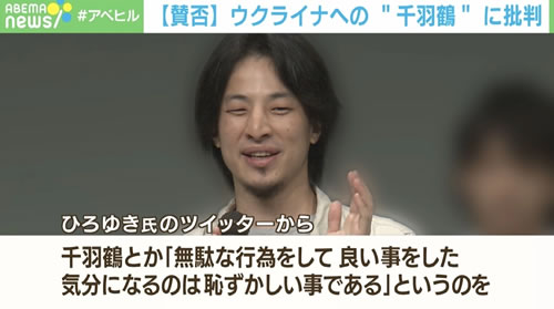 ウクライナの人々を祈って 千羽鶴 を送ったとか