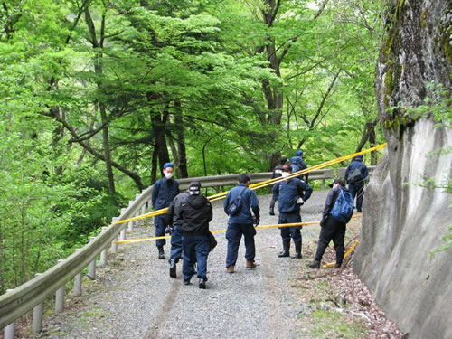 当時現場である 山梨県道志村キャンプ場近く で発見。