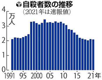 近年 コロナ の影響かまた 自殺者 が増えているそうです。