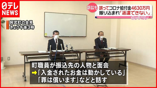 山口県阿武町 4630万円誤送金