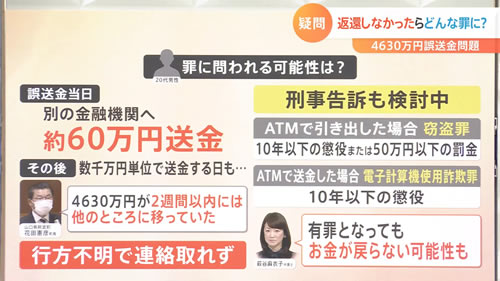 今話題が大きいのは 山口県 の 4630万円誤送金