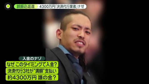 決済代行業者 と呼ばれる 3社? から 約4300万円 が