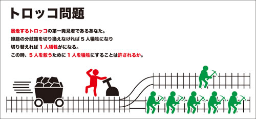 車が 5人 を回避すれば 間違いなくこの 1人 を跳ねる