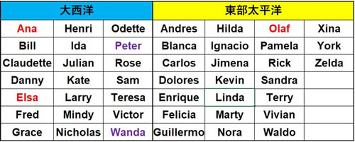 | 2021年ハリケーン名(「アナと雪の女王」からも) |
