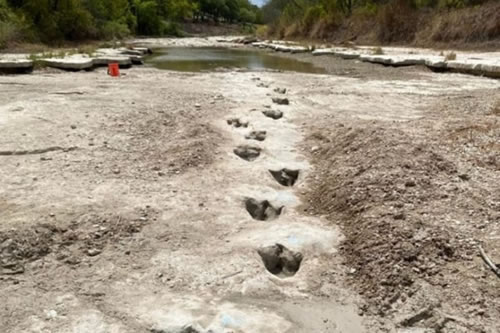 干上がった川底 から 沢山の恐竜の足跡 が見つかったと