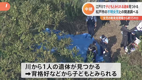 江戸川河口 で 不明の女児 が見つかりましたが、