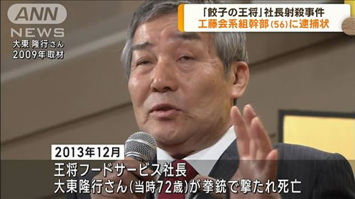 昨日? 9年前だったか 餃子の王将 の 社長 が 射殺