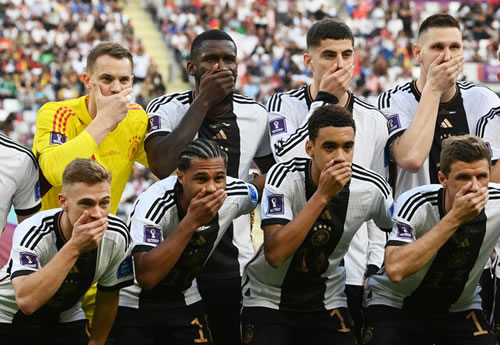 試合前の 集合写真 で 全員が口を塞ぐ行為