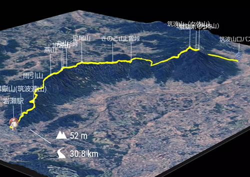 バックには 山々 が連なっていて、最前列 は 筑波連山
