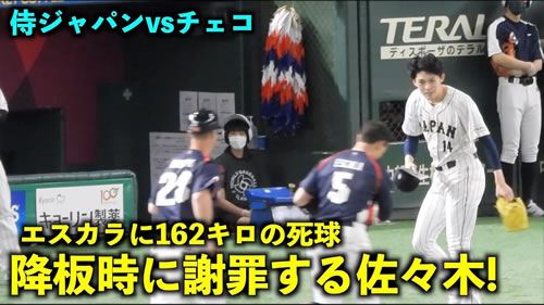 一つの例として 佐々木投手 が 相手(チェコ) に 死球