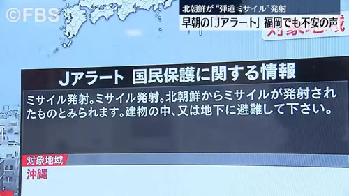 今日は 朝から Jアラート が 発令