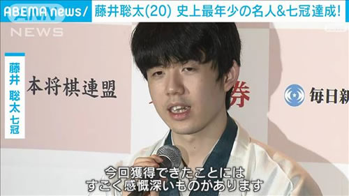 最年少名人 しかも 七冠達成 これも 最年少 です。