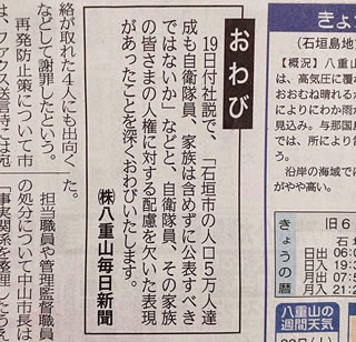 八重山支局 とは言え 毎日新聞 とか 最大手新聞社