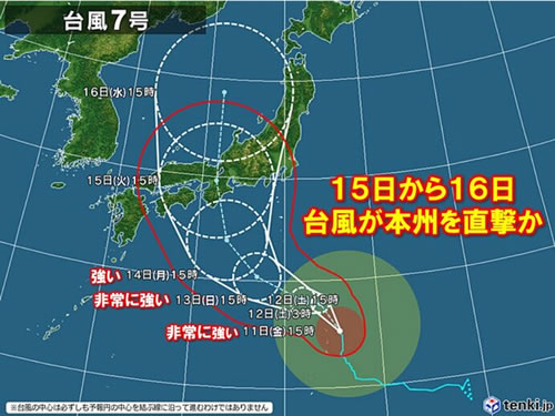 台風7号 は どうみても 本州直撃コース です