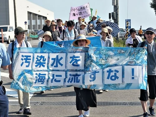 処理水の海洋放出に反対する市民団体のメンバーらが集まり、