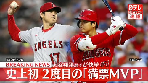 ア・リーグ MVP それも 2回目 さらに 満票受賞