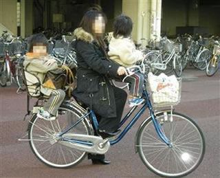 葉羽 昔、道交法の取り締まりがあまり厳しく無かった頃、僕の同級生(女性)は4人乗りしてましたね。前の子供用椅子(そういうのがあった)に一人、後ろにも一人、そして赤ちゃんをおんぶして運転。外に方法が無かったんでしょうね。なお現在は、合法的に二人乗り・三人乗りできる専用椅子が付けられるようです。
