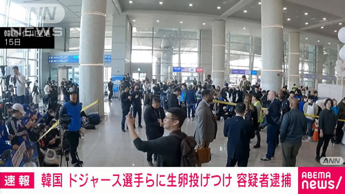 昨日 ドジャース 仁川空港 に 到着 しましたが