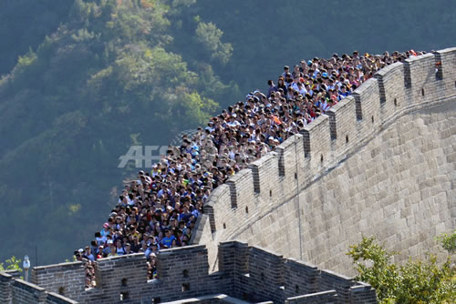 あの 長い長城碧 が 全て 人で埋まっている