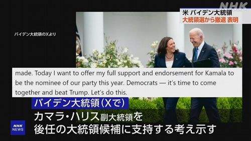 バイデン氏 とうとう 大統領選辞退 撤退 に なりましたね。