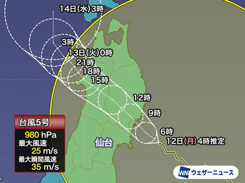 そして ついに 今日 東北地方上陸 横断? 停滞?