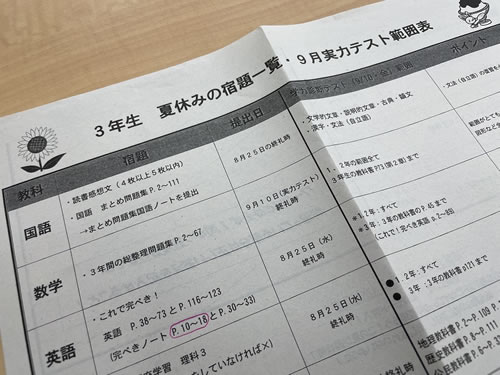 息子も 宿題 提出物 ほとんど 出していなかったと