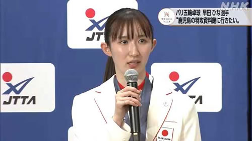 今回 パリオリンピック 卓球メダリスト 早田ひな選手