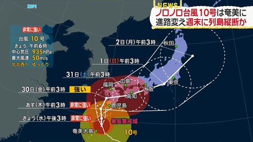 で VS の位置に 台風10号 がいて 四国 大阪 紀州 辺りで