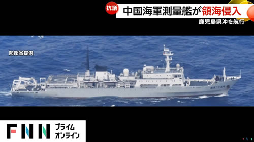 鹿児島県・屋久島周辺 で 日本領海に侵入