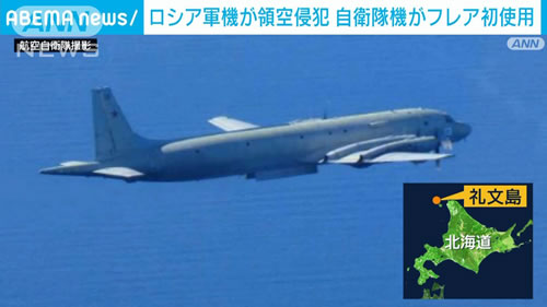 防衛省によりますと、ロシア軍 の IL38哨戒機1機 が、