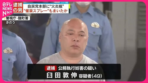 今朝は いきなり 自民党本部に火炎瓶襲撃 首相官邸に車で襲撃