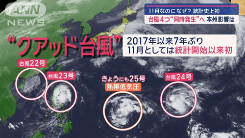 今 日本の南海上に 台風4つ あるのかな