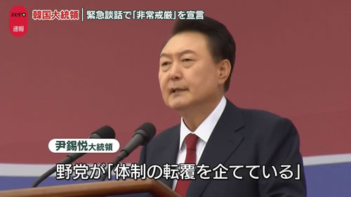非常戒厳を 宣言し 国会などに 軍を動員した