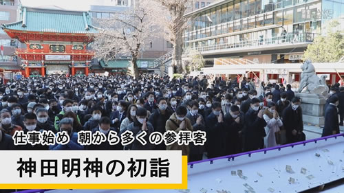 今 TV で 神田明神様 で 仕事始め の お参りを 中継