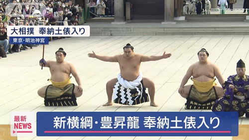 今日は 新横綱 豊昇龍 明治神宮 で 奉納土俵入り